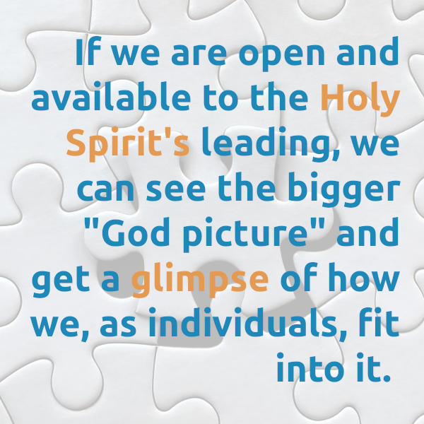 This kind of in-the-moment analysis offers an opportunity to put an eternal perspective on a temporal situation. Second Corinthians 4 bears this out; we can see that, though what we perceive to be our immediate needs might be in jeopardy, God is always faithful...it just may not look like what we assume it to be. If we are open and available to the Holy Spirit's leading, we can see the bigger "God picture" and get a glimpse of how we, as individuals, fit into it.